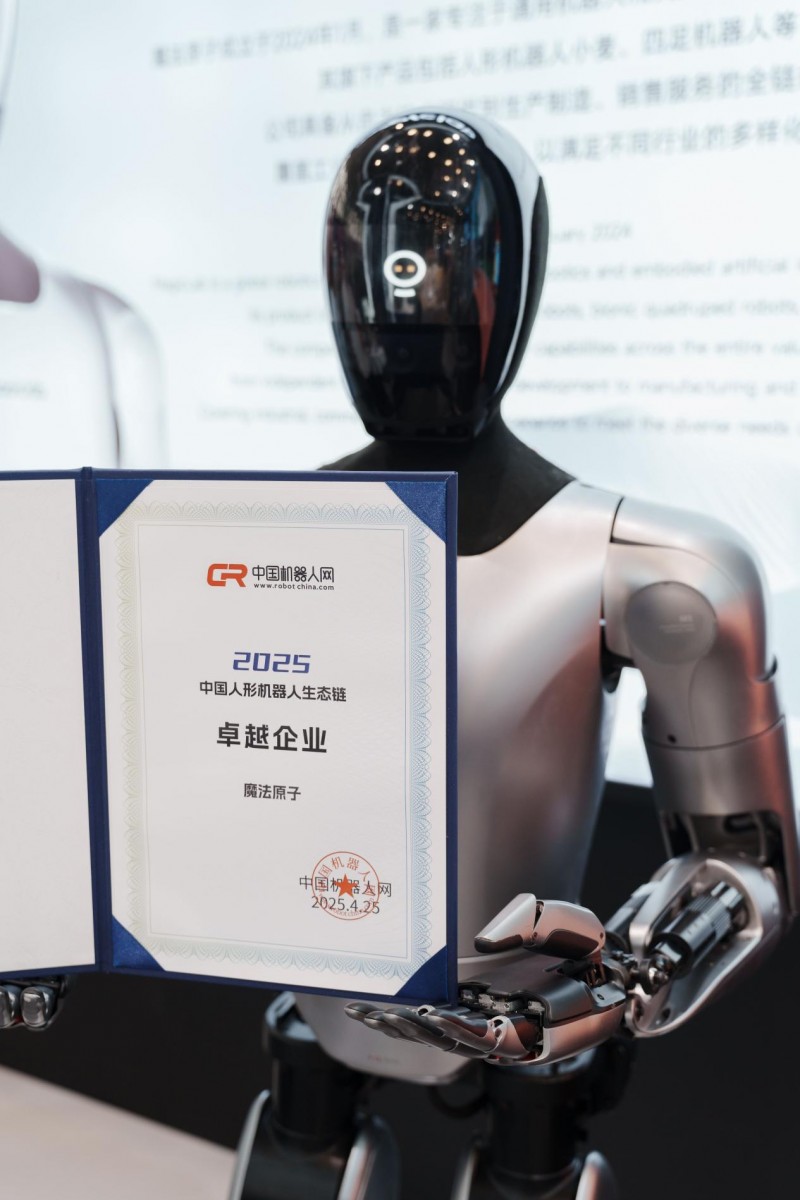 4月25日,以“人机共融 智造未来”为主题的2025中国人形机器人生态大会暨智能机器人与未来科技展,于上海汽车会展中心盛大开幕。全球具身智能领域领军企业魔法原子,携旗下人形机器人“小麦”和四足机器人惊艳亮相。凭借在技术研发、产业生态构建等方面的卓越表现,魔法原子一举斩获“生态链卓越企业大奖”,突显其在全球具身智能产业中的突出贡献与标杆地位。