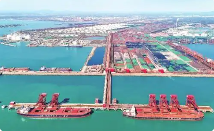 10月27日,山东港口青岛港第二座40万吨矿石码头投产。这是全国首个40万吨干散货数智码头,集成5G、人工智能、云计算等前沿技术,率先开发应用智能化的干散货码头通用操作系统,将实现全流程生产经营过程的实时监测、智慧决策和数字化感知。图为山东港口青岛港第二座40万吨矿石码头。新华社