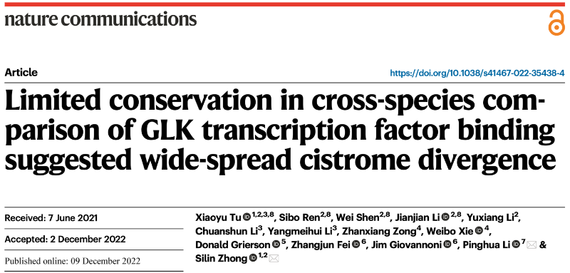 上海交大涂晓雨团队与合作者发文揭示植物光合作用关键基因GLK调控网络1亿年的演化博弈