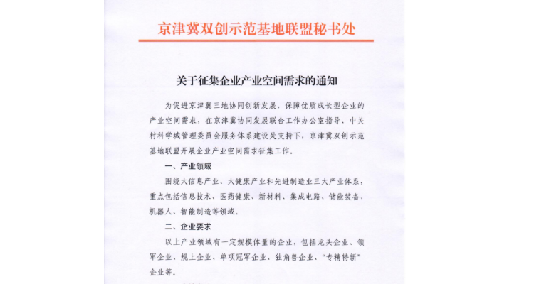 【征集】海淀企业京津冀产业空间需求征集