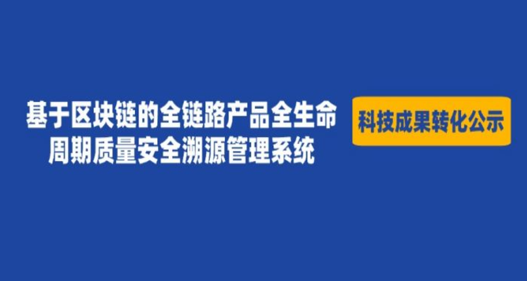 “基于区块链的全链路产品全生命周期质量安全溯源管理系统”科技成果转化公示