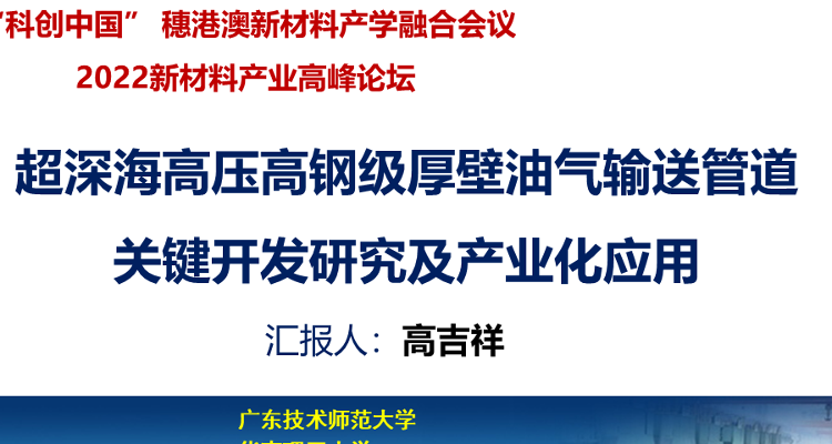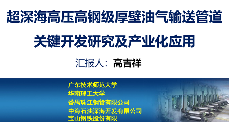 口头报告四 题目:《超深海高压高钢级厚壁油气输送管道关键技术研究及产业化应用》