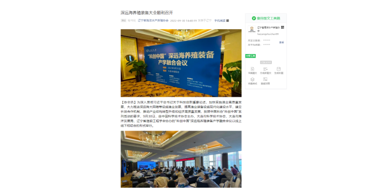 “科创中国”深远海养殖装备产学融合会议 2022-12-06 20:09:23