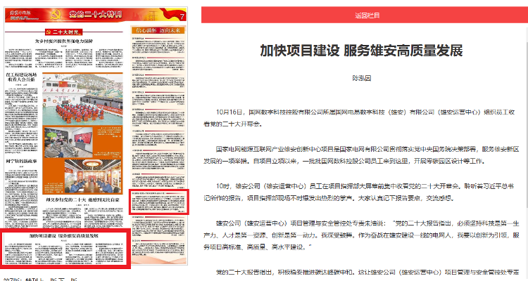 【国家电网报】加快项目建设 服务雄安高质量发展