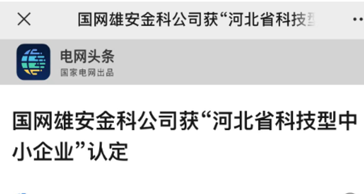 【电网头条】国网雄安金科公司获“河北省科技型中小企业”认定