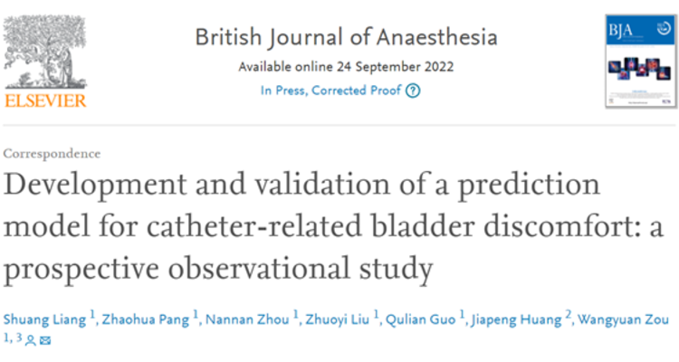 邹望远教授团队在国际权威期刊《英国麻醉学杂志》发表原创临床研究成果