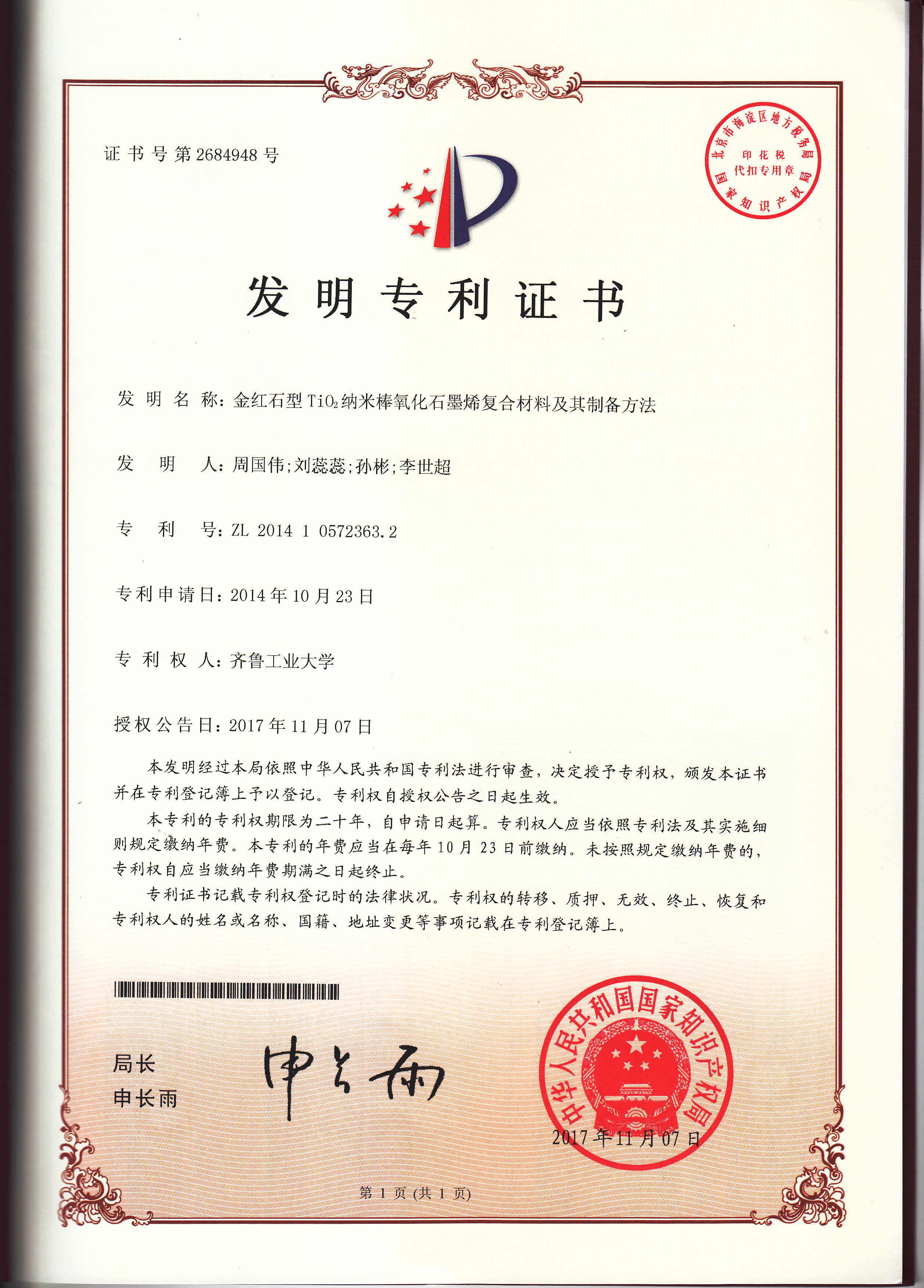 金红石型TiO2纳米棒氧化石墨烯复合材料及其制备