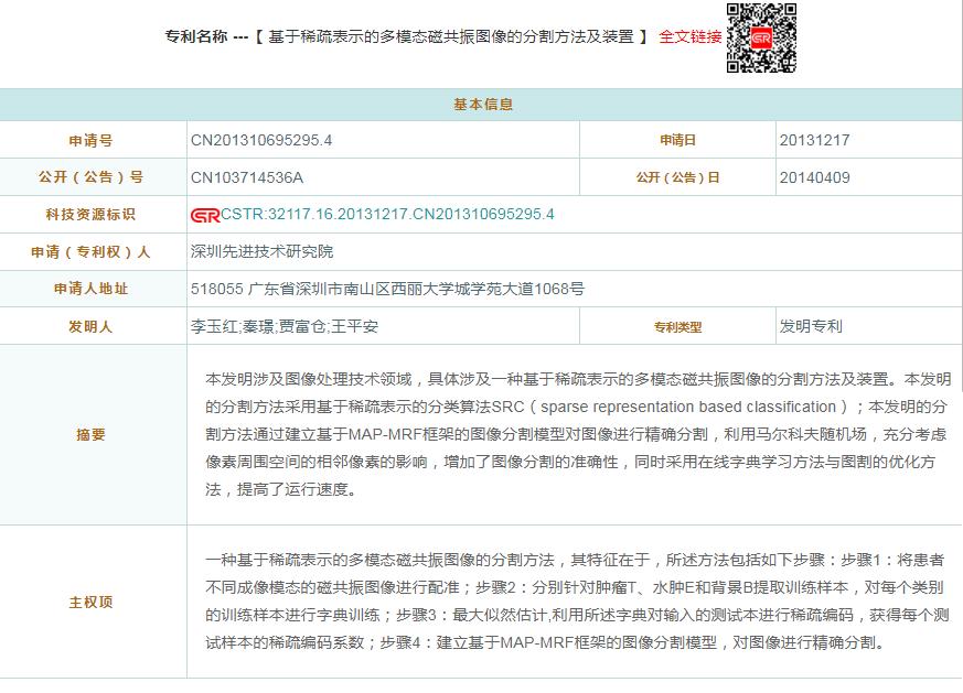 基于稀疏表示的多模态磁共振图像的分割方法及装置