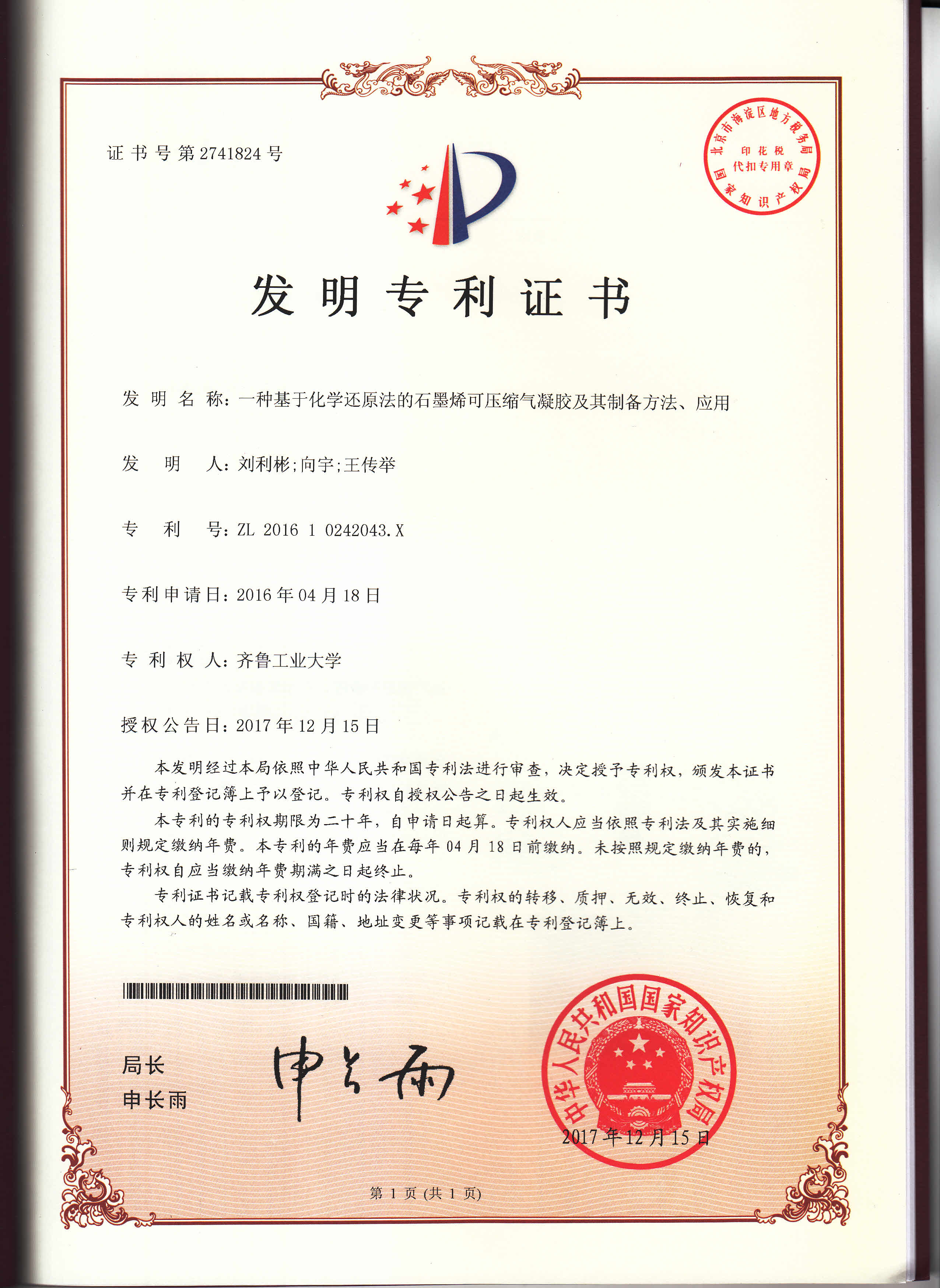 一种基于化学还原法的石墨烯可压缩气凝胶及其制备方法、应用