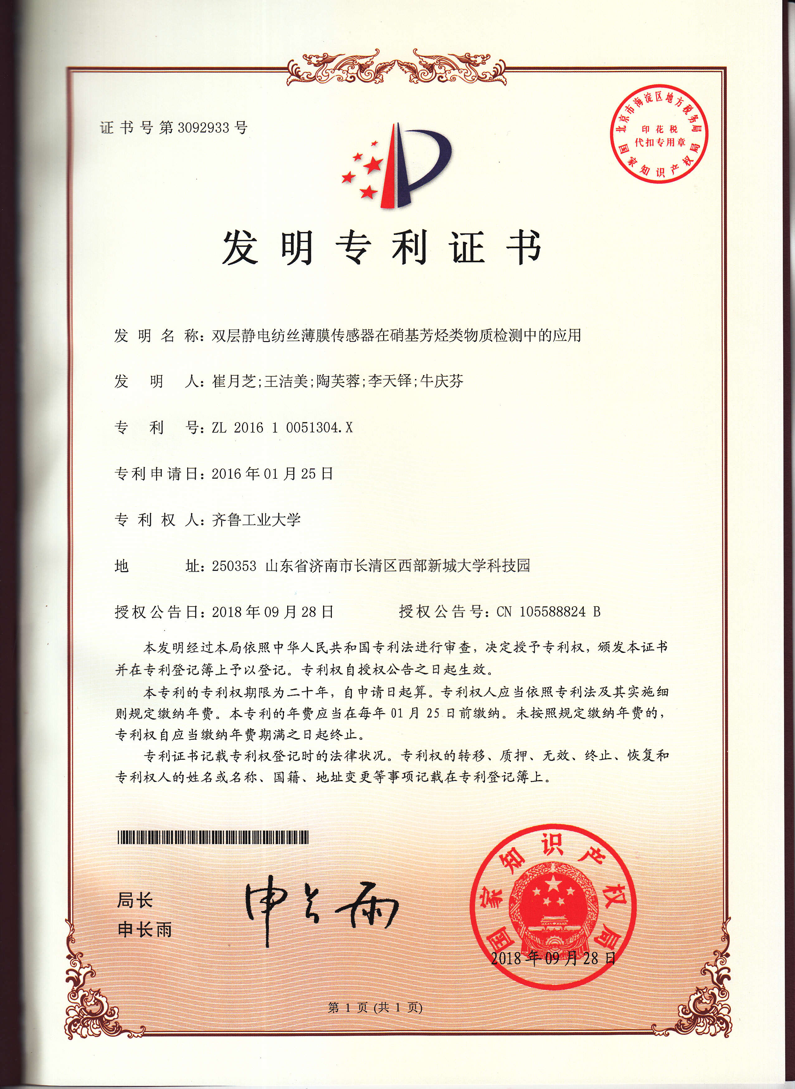 双层静电纺丝薄膜传感器在硝基芳烃类物质检测中的应用