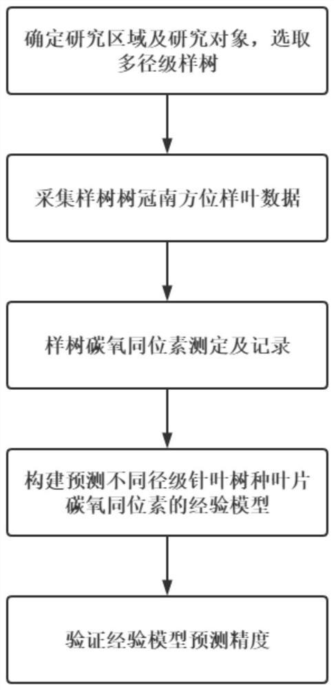 一种预测不同径级针叶树种叶片碳氧同位素的方法