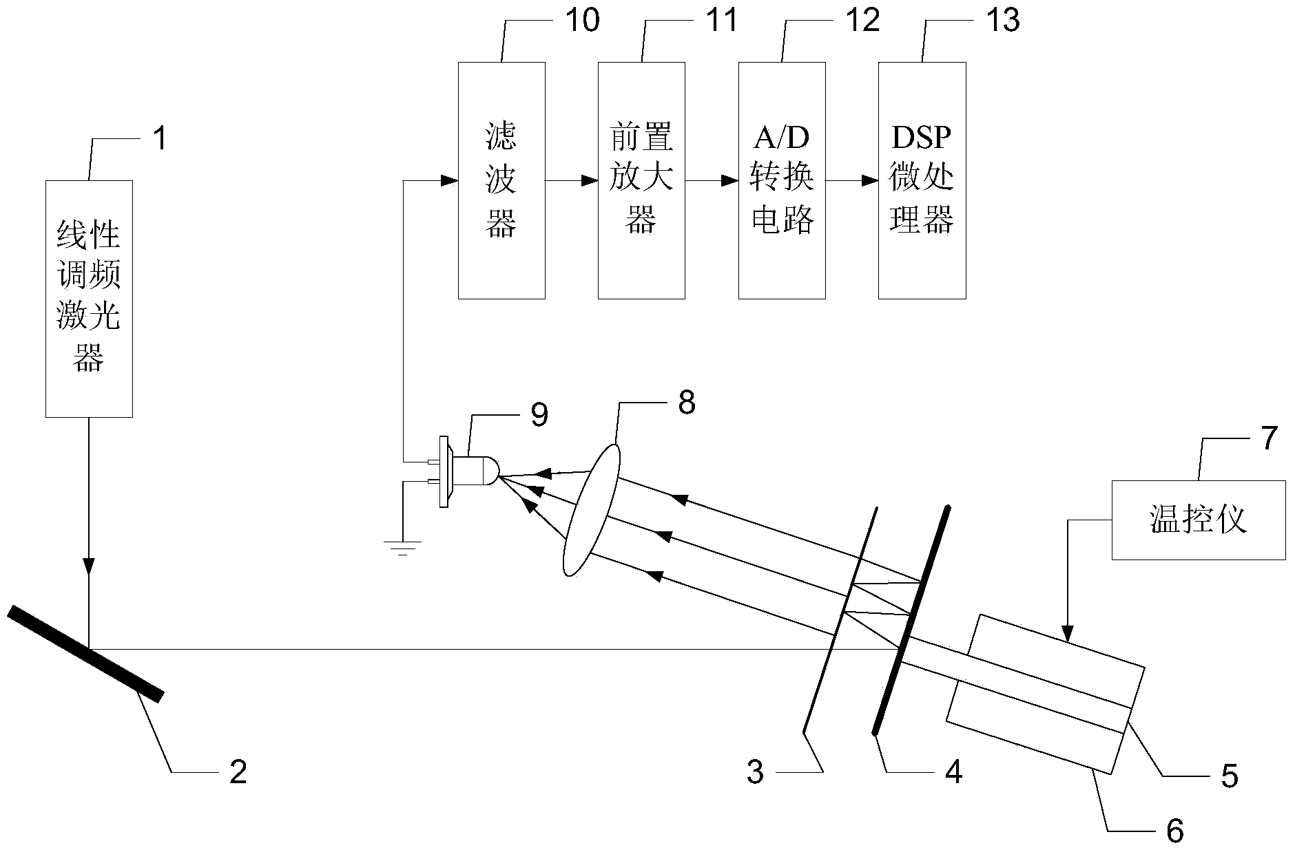 线性调频多光束激光外差二次谐波法测量金属线膨胀系数的装置及方法