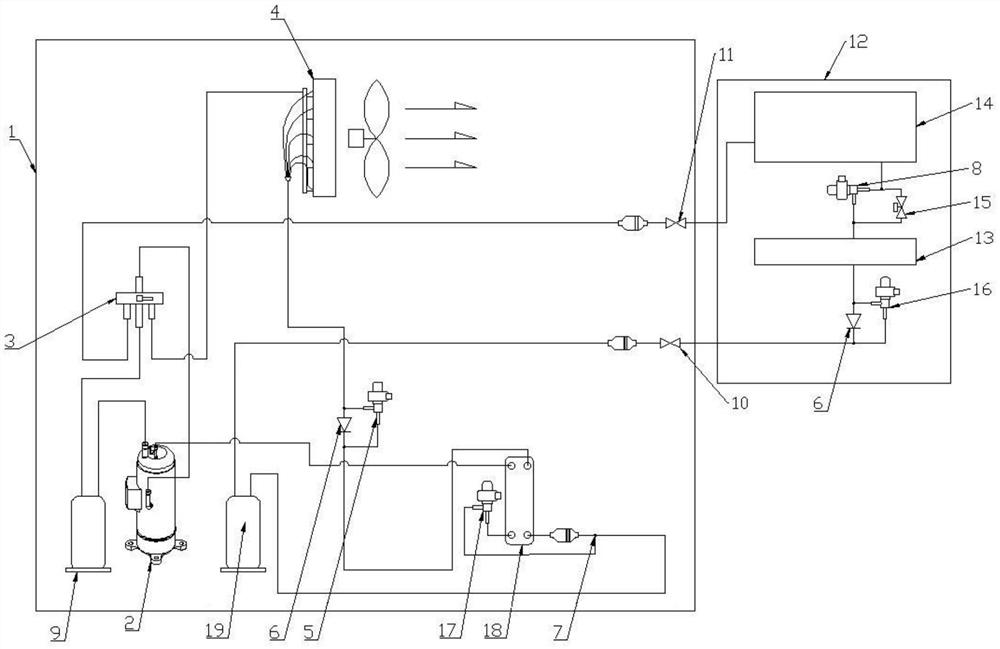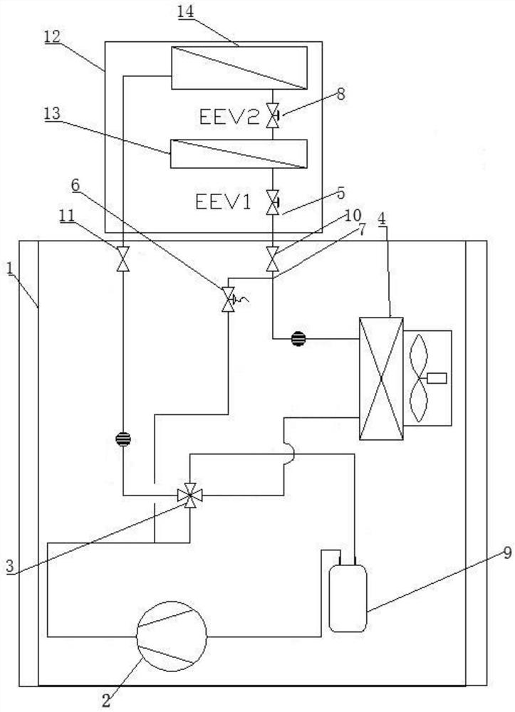 一种带旁通再热除湿功能的变频制冷及制热系统