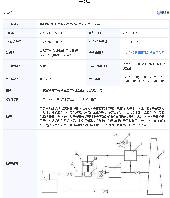 焦炉地下烟道气的阶梯余热利用及减碳排放装置