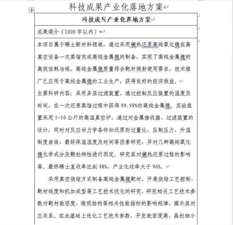 真空蒸馏法制备高纯稀土金属镱及靶材关键技术研发