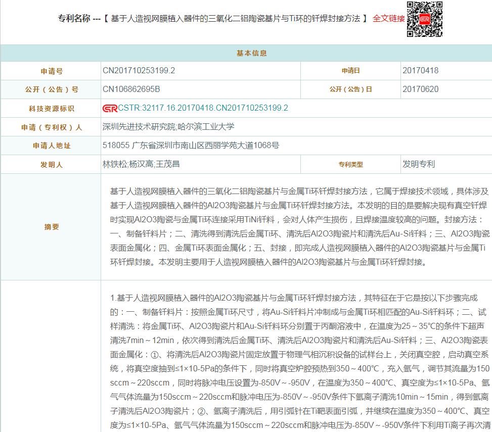 基于人造视网膜植入器件的三氧化二铝陶瓷基片与Ti环的钎焊封接方法