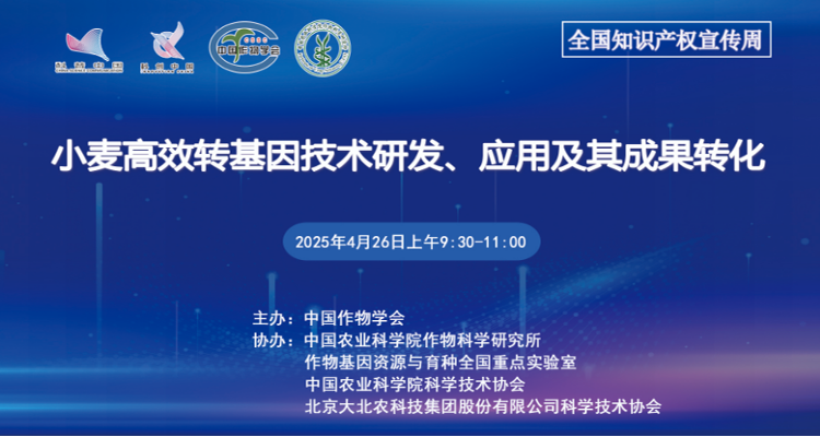为深入贯彻落实习近平总书记关于知识产权工作的重要论述和重要指示精神,全面加快知识产权强国建设,在第25个世界知识产权日来临之际,中国作物学会将举办“全国知识产权宣传周——小麦高效转基因技术研发、应用及其成果转化”线上报告活动,加强知识产权保护和运用宣传普及,全面提升科技工作者尊重和保护知识产权的意识。