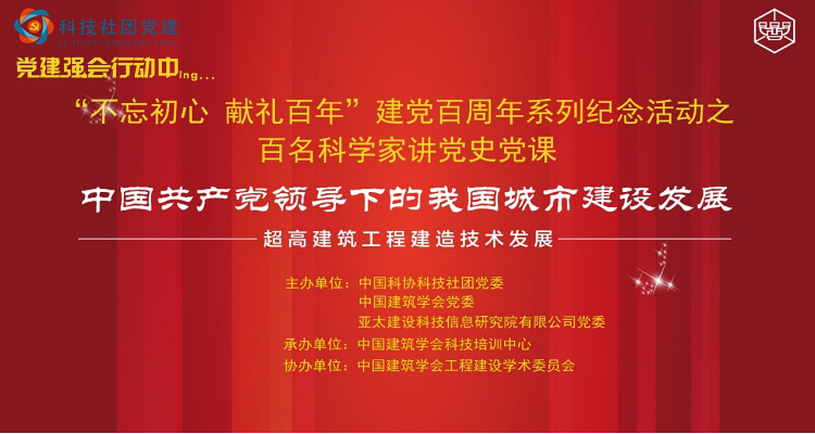 “不忘初心 献礼百年”建党百周年系列纪念活动之百名科学家讲党史党课—中国共产党领导下的我国城市建设发展—超高建筑工程建造技术发展