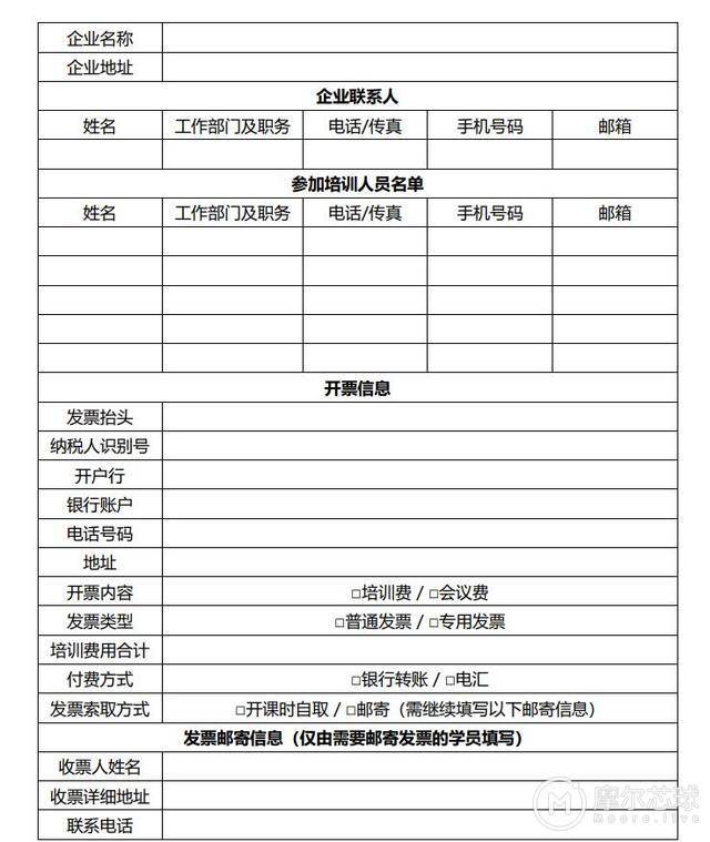 填写完成后请通过邮件或微信发给培训咨询联系人,宗琪玮。