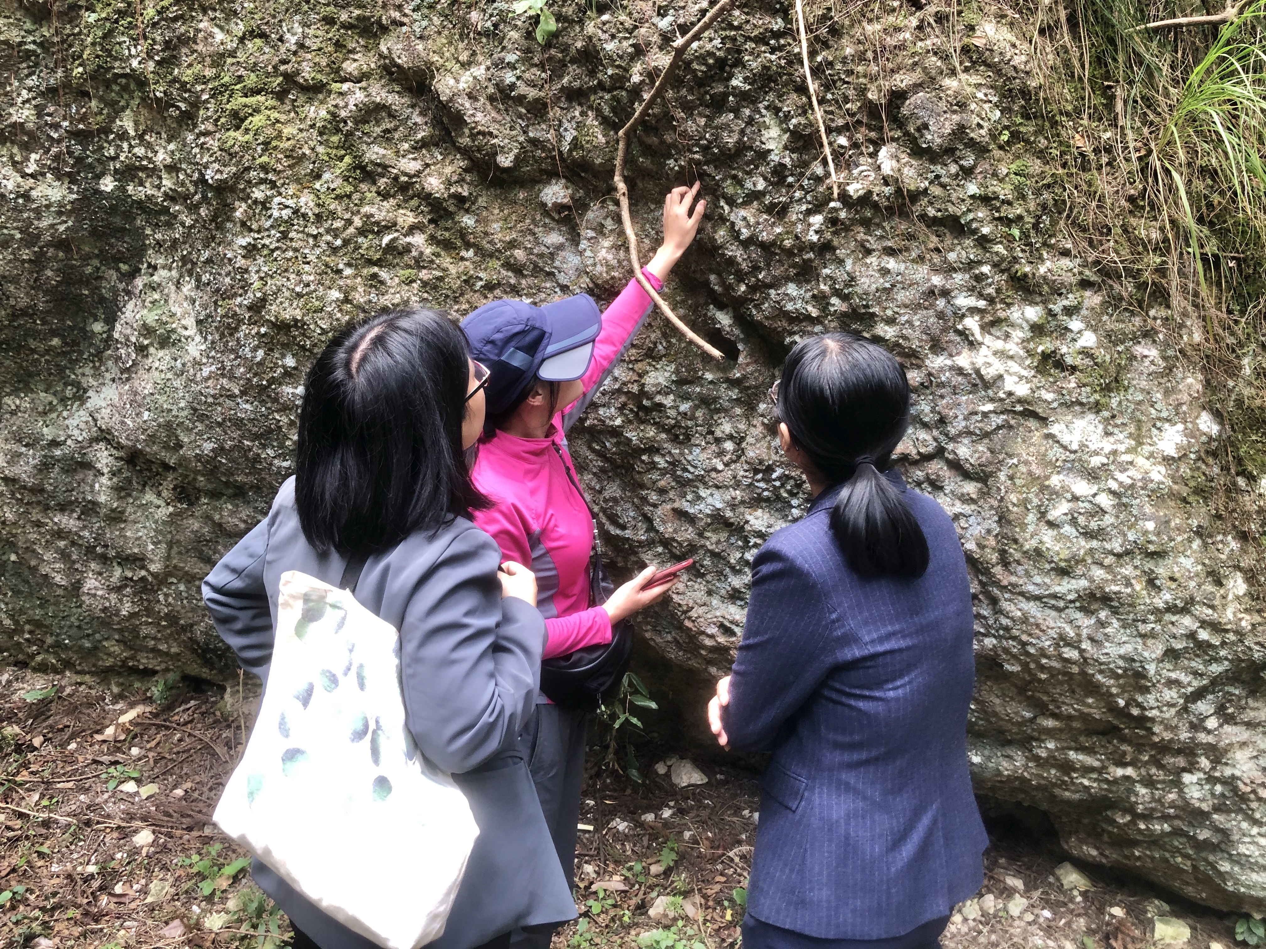 采集岩石、鉴别探讨岩石特性、搬运岩石标本……,1月12日雁荡山博物馆走进大龙湫景区采集岩石,进一步丰富和补充馆内岩石标本。
