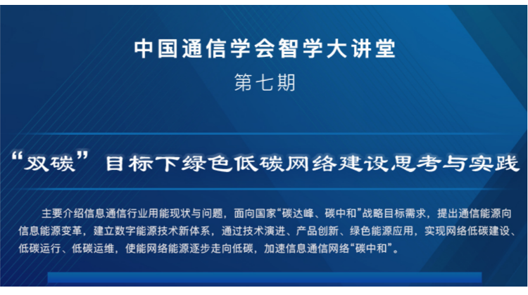 中国通信学会智学大讲堂第七期:“双碳”目标下绿色低碳网络建设思考与实践