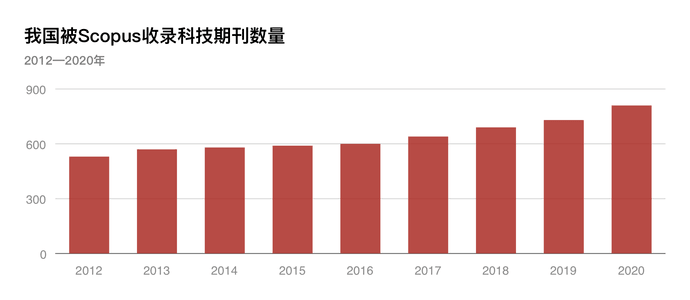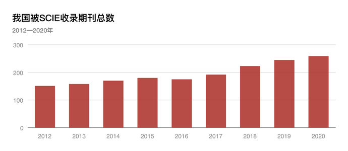 2012—2020年,我国科技期刊发展迅速,被国际权威数据库收录的期刊种数逐年增长,影响力提升显著。