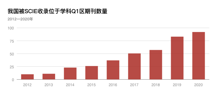 2012—2020年我国被SCIE收录位于学科Q1区期刊数量