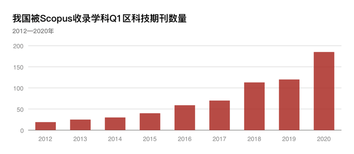 2012—2020年我国被Scopus收录学科Q1区科技期刊数量