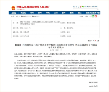 教育部、国家新闻出版总局等五部委联合发布了《关于准确把握科技期刊在学术评价中作用的若干意见》