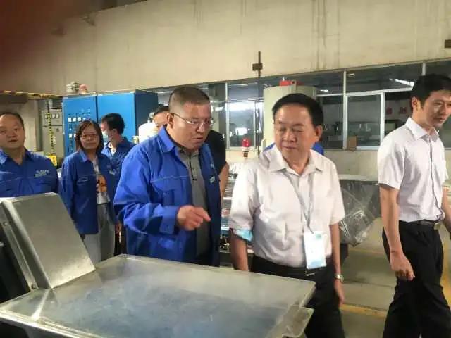 在宁夏青龙塑料管材有限公司,中国工程院院士瞿金平(右二)详细了解企业的生产经营情况。