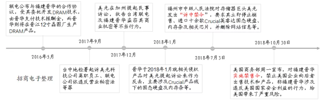2017年12月份,当福建晋华高歌猛进的时候,美国存储器龙头美光以知识产权被窃为由,在美国加州起诉福建晋华与其合作方台联电,2018年10月份,美国商务部将福建晋华列入无法从美国公司购买元件、软件和技术产品的实体名单,晋华成为中兴通讯之后第二家被禁的中国企业。