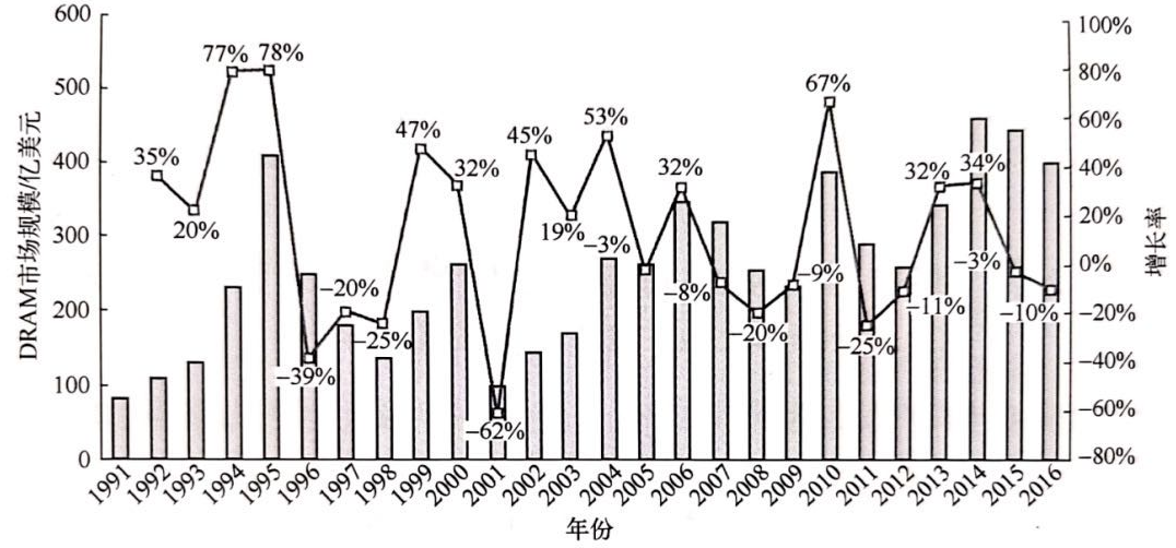 (2)频繁爆发价格战。比如从1994年开始,日韩之间不到10年就爆发了三次大规模的DRAM价格战,多次出现“生产一片亏损一片”的局面。