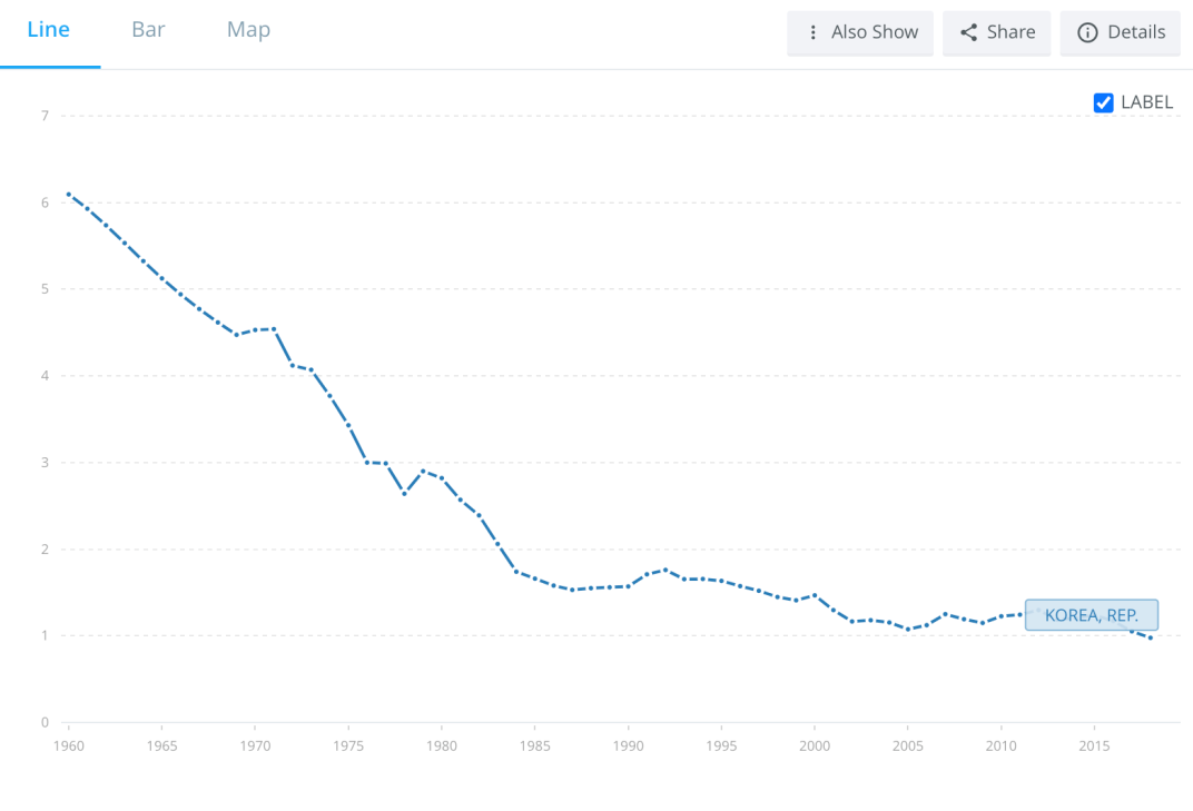 这种献祭式的追赶,让韩国创造了震惊世界的江汉奇迹,也创造了全球倒数第二的生育率,韩国急速冲向老龄化。而日本、中国的老龄化也日渐令人担忧。