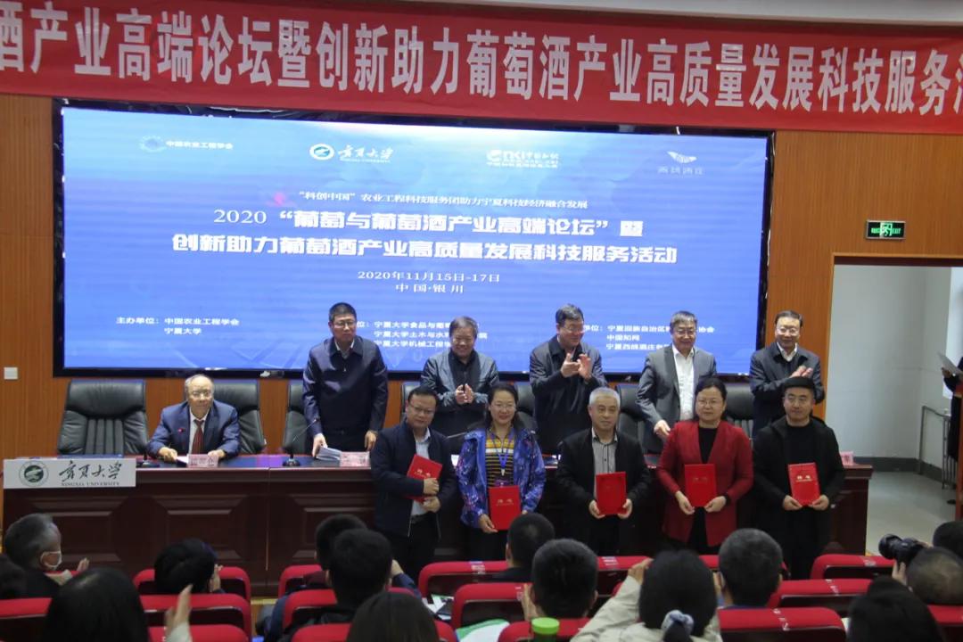 2020年11月15日,由中国农业工程学会和宁夏大学共同主办,宁夏大学食品与葡萄酒学院、宁夏大学土木与水利工程学院、宁夏大学机械工程学院承办,宁夏回族自治区科学技术协会、中国知网和宁夏西鸽酒庄有限公司支持的2020“葡萄与葡萄酒产业高端论坛”在银川成功召开。