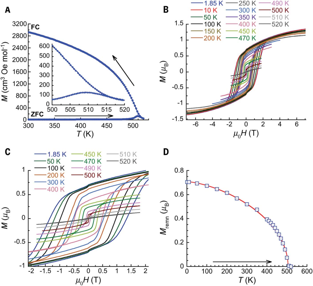 Panagiota Perlepe et. al. Metal-organic magnets with large coercivity and ordering temperatures up to 242 ℃, Science 2020, 370 (6516), 587-592