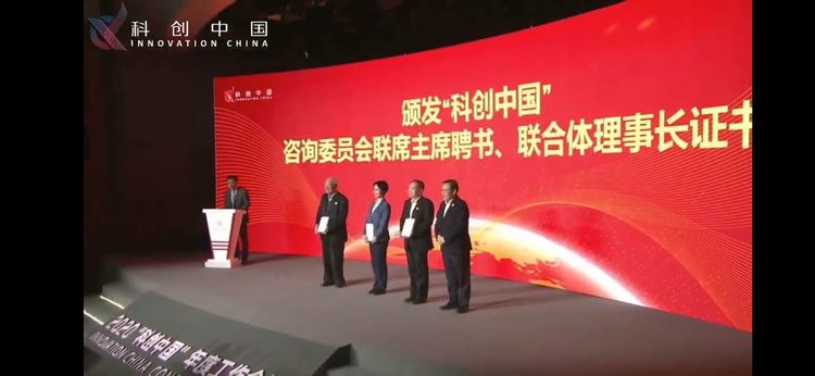 万钢为“科创中国”咨询委员会联席主席王小谟院士、江小涓女士颁发聘书,为“科创中国”联合体理事长周济院士颁发证书,标志着“科创中国”最高层次的专家智库和协同组织正式组建。“科创中国”咨询委员会采用“双主席制”,由著名科学家和经济学家共同领衔,打造促进科技经济融合的人才汇聚高地、思想策源高地;“科创中国”联合体由71家“政产学研金服用”领军单位共同发起成立,以组织联结、服务联结、利益联结推动科技成果转移转化和产学研融通。