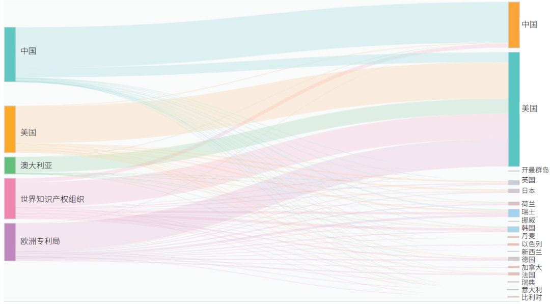 中国是最大的专利受理国,其他国家在中国的专利布局量较大,中国是全球技术的输入国。中国受理的专利主要来自国内的申请人,中国的大部分技术并未“走出去”,集中在本土化保护,尚未形成有效的国际布局,未申请专利的区域,一旦出现侵权行为,则无法维权。
