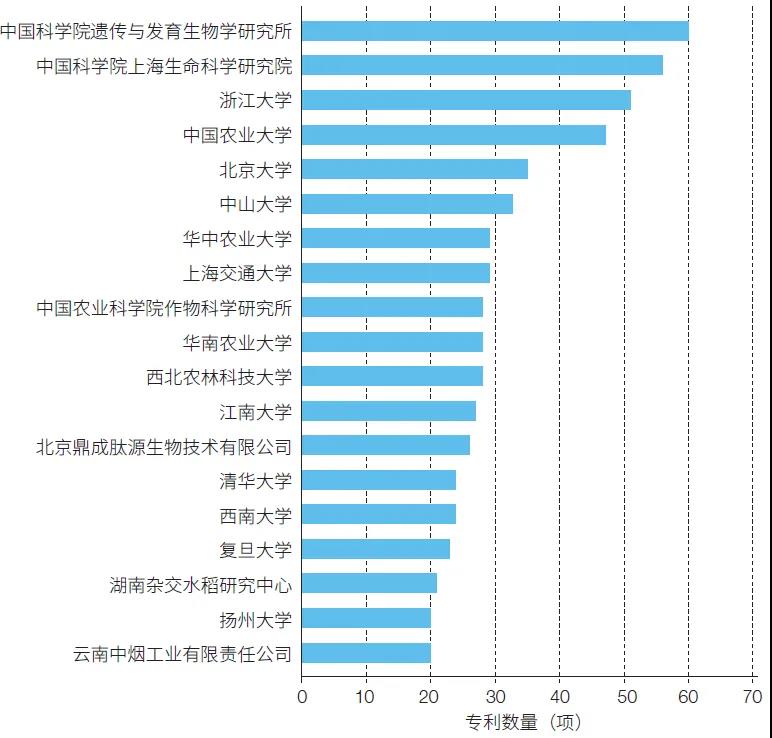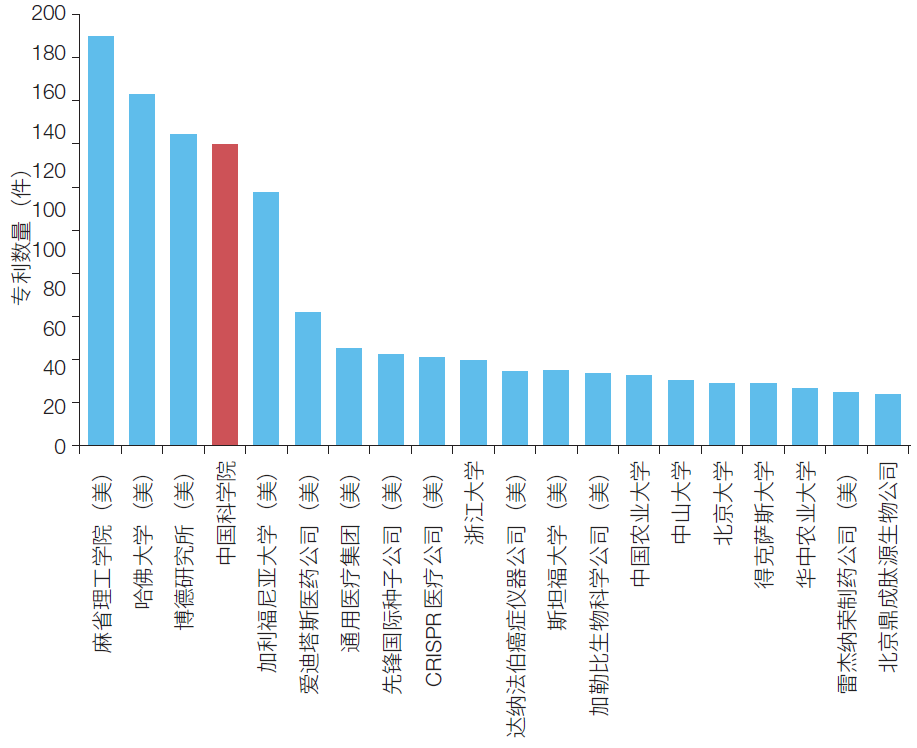 图 1 基因编辑领域中国主要机构拥有专利情况