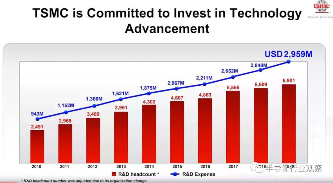 首先要提一下,2019年台积电的全年研发费用为29.59亿美元(约折合人民币209亿元)创下历史新高,较前一年成长约4%,约占总营收8.5%,并且是台湾科技业界年度研发支出最高纪录。