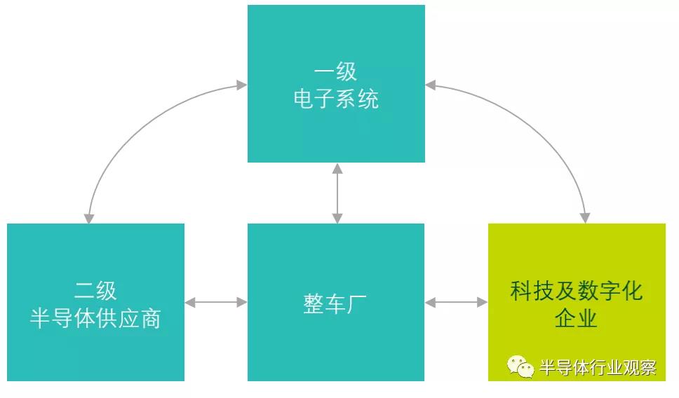 在汽车半导体的供应过程中,同样存在变化。在德勤发布的一份报告中指出,在传统汽车行业生态体系中,半导体供应商属于Tier2厂商(二级供应商,是跟一级供应商签订合同的供应商),他们将产品销售给Tier1厂商(一级供应商,给设备厂商供货,也就是说产品直接供应整车厂的汽车零部件供应商),后者将技术整合成模块交给整车厂装配。