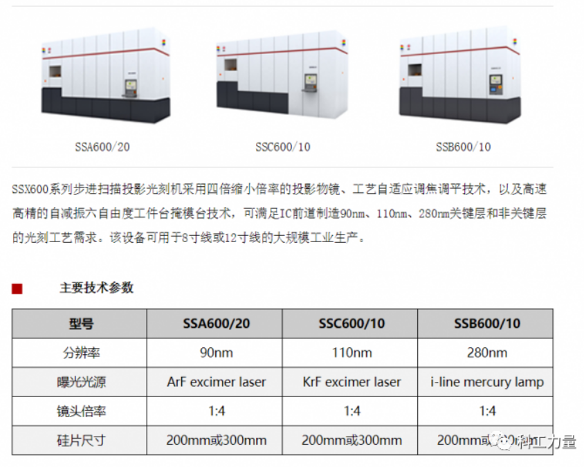同年,上海微电子SSX600系列三款步进扫描投影光刻机实现量产,其中SSA600/20光刻机分辨率达到了90nm。但是,这也意味着上海微电子用了九年时间才实现90nm光刻机量产,而且仍没有做出更先进的产品。