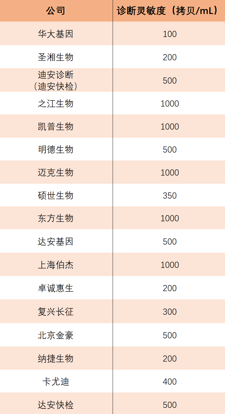 由于检测靶标和技术水平的差异,众多试剂盒的检测下限(灵敏度)也有所不同——1000拷贝/mL、500拷贝/mL、200拷贝/mL都有[8]。