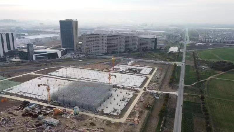 在秀洲高新区,2021年度新纳入的百亿工业项目大健康智慧产业园项目现场同样也是一片忙碌的景象。记者看到,目前项目已经完成基础建设,2个车间的一层内架搭设也已完成。