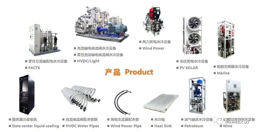 高澜股份专注于电力电子装置用纯水冷却设备的研发、设计、生产、销售及售后服务,是国际领先的电力电子装置用纯水冷却设备专业供应商。公司秉承艰苦投入为客户创造价值,和伙伴分享实现价值的快乐,致力于为全球客户提供专业的节能产品和整体解决方案,成为新能源和节能技术应用的先行者。产品广泛应用于发电、输电、配电及用电各个环节的电力电子装置冷却。