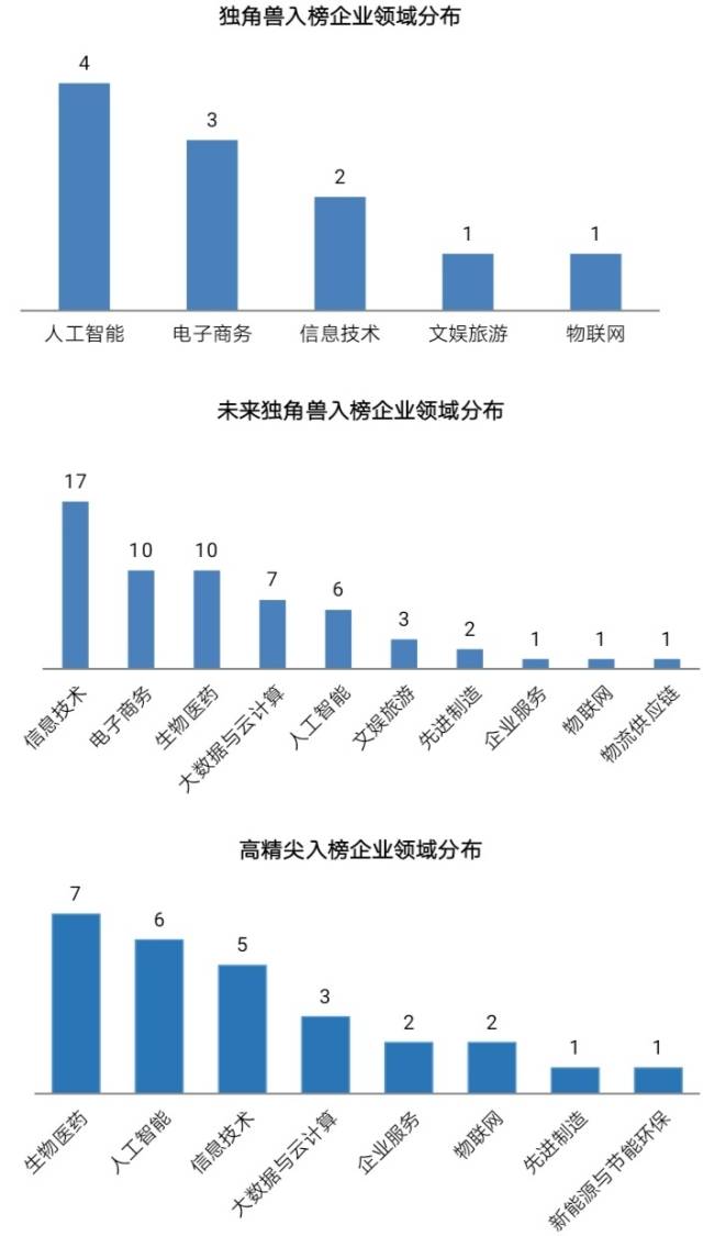 其中,“独角兽”创新企业榜单主要面向成立时间不超过10年、已获得私募股权投资且尚未上市、市场估值10亿美元以上的创新企业征集,遵循国际通用标准;“未来独角兽”创新企业榜单定位于发掘具有成为“独角兽”的潜力创新企业,面向市场估值1亿美元—10亿美元之间的创新企业;“高精尖”企业榜单则定位于核心技术创新,具备较强行业影响力的技术企业。