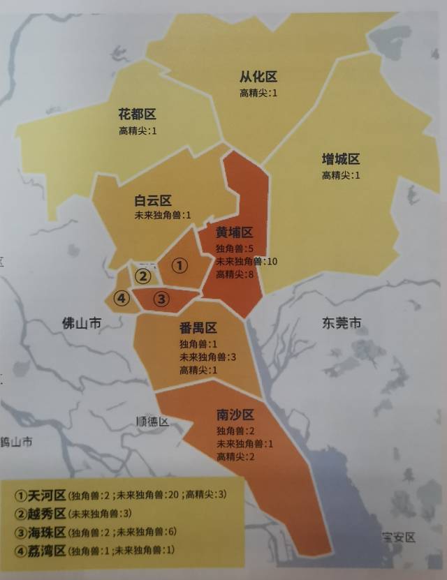 本土“独角兽”生态已具规模,高密集节点为黄埔、天河