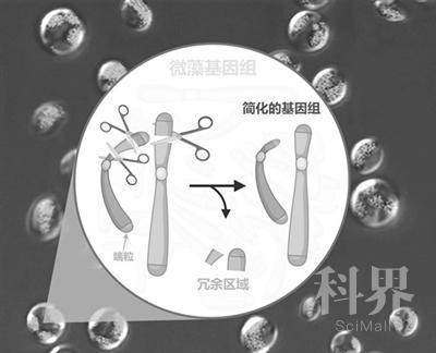 工业微藻基因组中冗余片段被删除示意图 刘阳供图