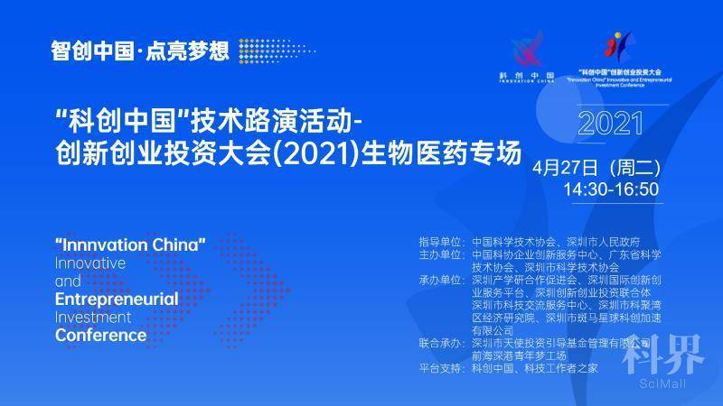 4月27日下午,由中国科学技术协会、深圳市人民政府指导,中国科协企业创新服务中心、广东省科学技术协会、深圳市科学技术协会主办,深圳产学研合作促进会等承办的2021“科创中国”技术路演活动——创新创业投资大会生物医药专场在深圳前海深港青年梦工场顺利举行,线上线下近万人次通过科创中国平台、科技工作者之家等新媒体观看直播。