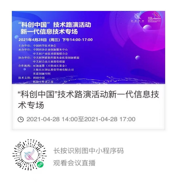“科创中国”技术路演活动新一代信息技术专场,将于2021年4月28日14:00至17:00开启线上直播。