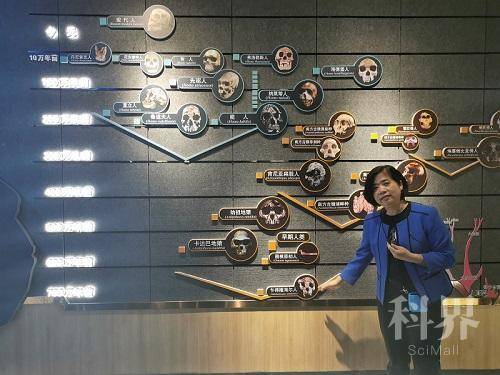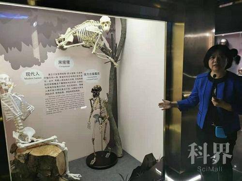 中科院古脊椎所研究员吴秀杰介绍人类演化馆。胡珉琦摄